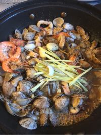 主料:白虾8尾;花蛤500g;小卷2条;肉丝200g;芹菜8支;蔥4支;蒜1顆;洋蔥半顆;