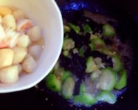 3、这道菜要注意炒的先后顺序,丝瓜比较容易熟,不宜炒太久,只要控制好火候,就能做出漂亮美味的菜菜哈!